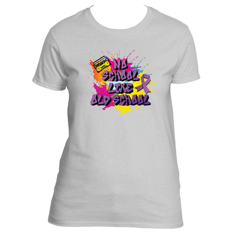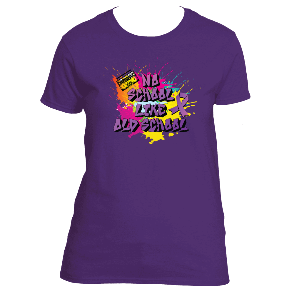 Help support the No School Like Old School Fitness Dance Party with this FRESH old school graphic tee!!! This classic fit ladies t-shirt made from preshrunk 100% Cotton Jersey and weighs 6.0 oz. It has taped neck and shoulders.